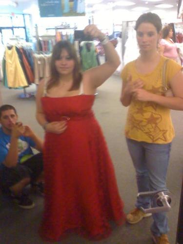 Jas and Heather making funny faces in front of her web cam.
