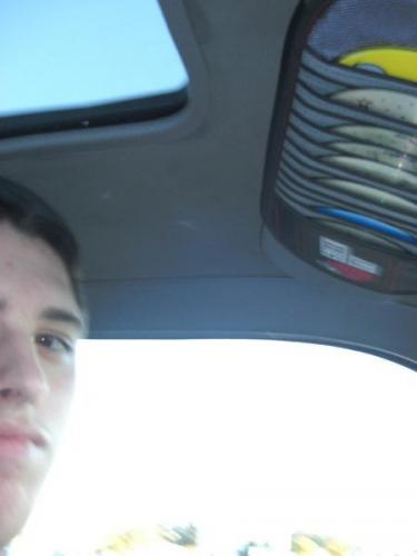 Jas inside his car.