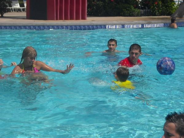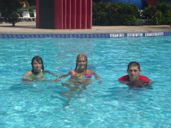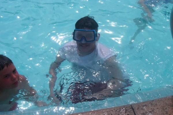 Isaac splashing me while Jason laughed.