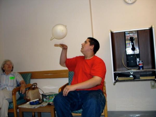 Waiting for Maya to be born, Jas entertains himself with a glove.