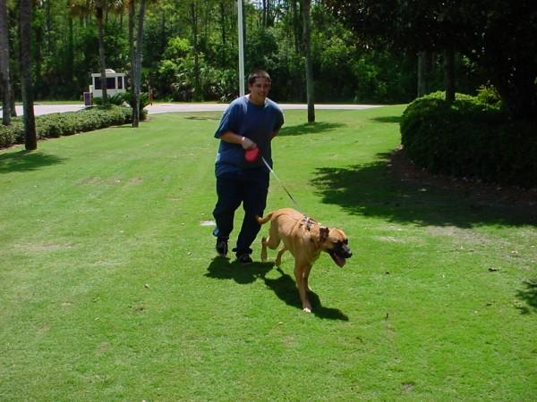 Jas walking Sabor at Disney