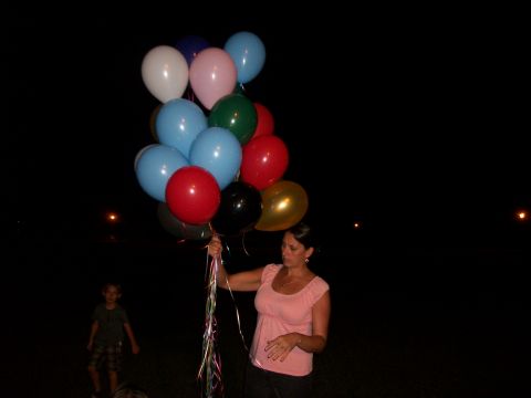 We always do your balloons first, while it is light, then dinner, but this year we had to reverse it, because of the storm. Some nerve storming on your birthday. So we had our Outback, and some cheese fries (naturally) for you, and then went to a park in Inverness and luckily the rain had stopped. There were some lights there so it wasn't pitch black. When we let your ballonos go you could see them just as well at night as during the day. I was relieved. Isaac wrote you a letter, and included a picture of you and him. He still remembers you so well, and misses you very much. That child has a heart of gold, he's silly, a typical boy, but also very sensitive. It melts my heart the things he does for you, still, after all these years. So we needed 3 ballons tied to his message of love to take them to you. All in all it was a nice day, a celebration of the wonderful day you graced us on this earth.