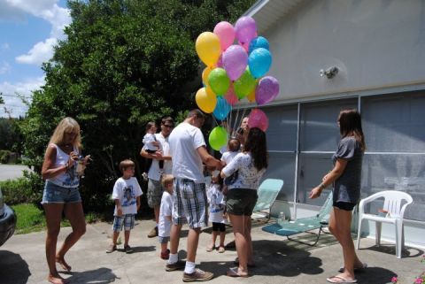 We went to Outback just like we did on your last birthday year, and birthday's before. The plan was to do your balloons, then dinner, like always. I ordered your balloons and was going to pick them up on the way. Heather has always got them from Winn Dixie every year but this year she was still on maternity leave, so I ordered them. I never thought about just how much room 24 balloons would take up!!! Ashley was driving her pretty new car, and Donny was with us. She dropped me at Publix. It was pouring, I mean buckets of water streaming down pouring. Thunder, lightning, but in I ran to grab the balloons. While I was in Publix Donny started feeling sick. Ashley brought him back home while I was in there. When I saw the balloons, I thought uh oh, what was I thinking. Why didn't I ask Trish and Chris with their big old van to pick them up! Trying to get them all in Ash's car was almost comical, and she was freaking out a little because while I was trying to fit 24 balloons in her back seat, her car was getting soaked. The rain was insane. As much as I hated to see Donny not be able to make it, those balloons would never have fit if he was in that back seat. They hardly fit without him. By the time I got them all in the car, I was soaked, my seat was soaked, I looked like a drowned rat, but wasn't going to let a little nature get in the way!!!